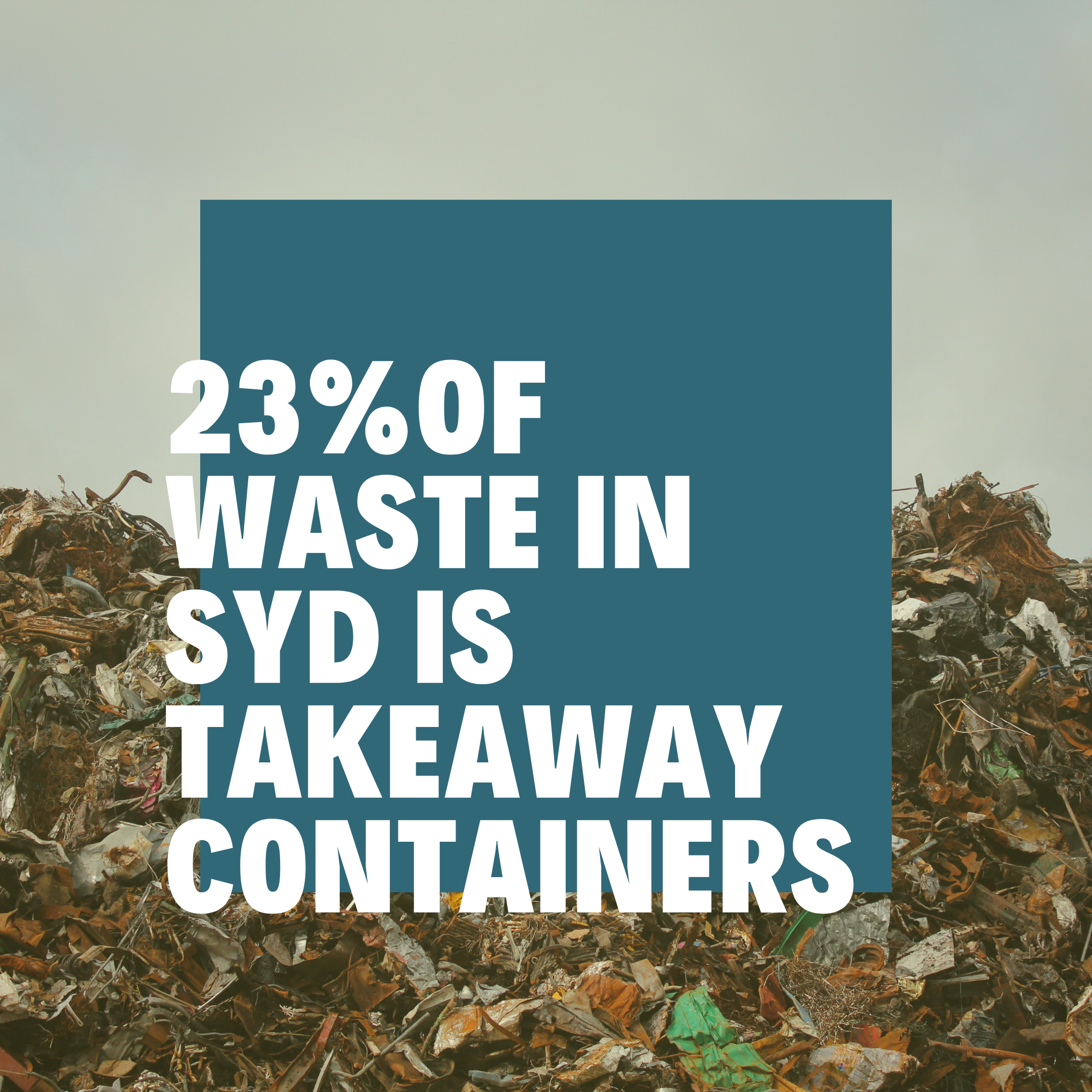 Shockingly 23% of all litter in Sydney is takeaway food containers. The only category with more waste is in fact beverage containers - but that category encompasses everything from milk bottles, to soft drink as well as takeaway coffee. Single use is clearly the problem with our waste streams.
